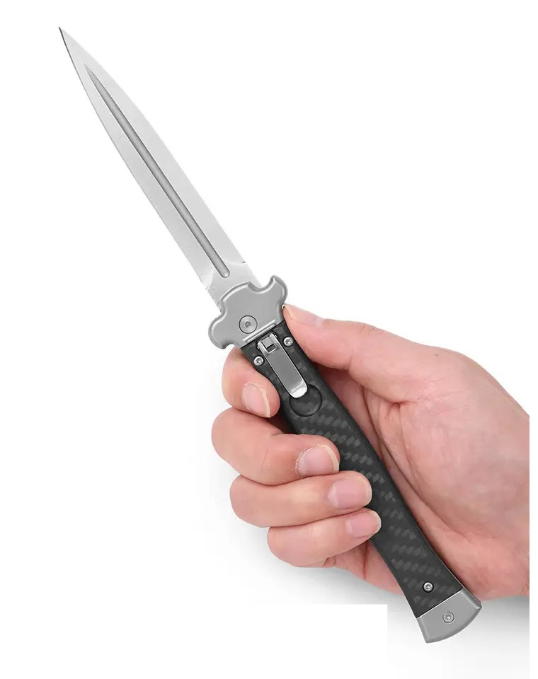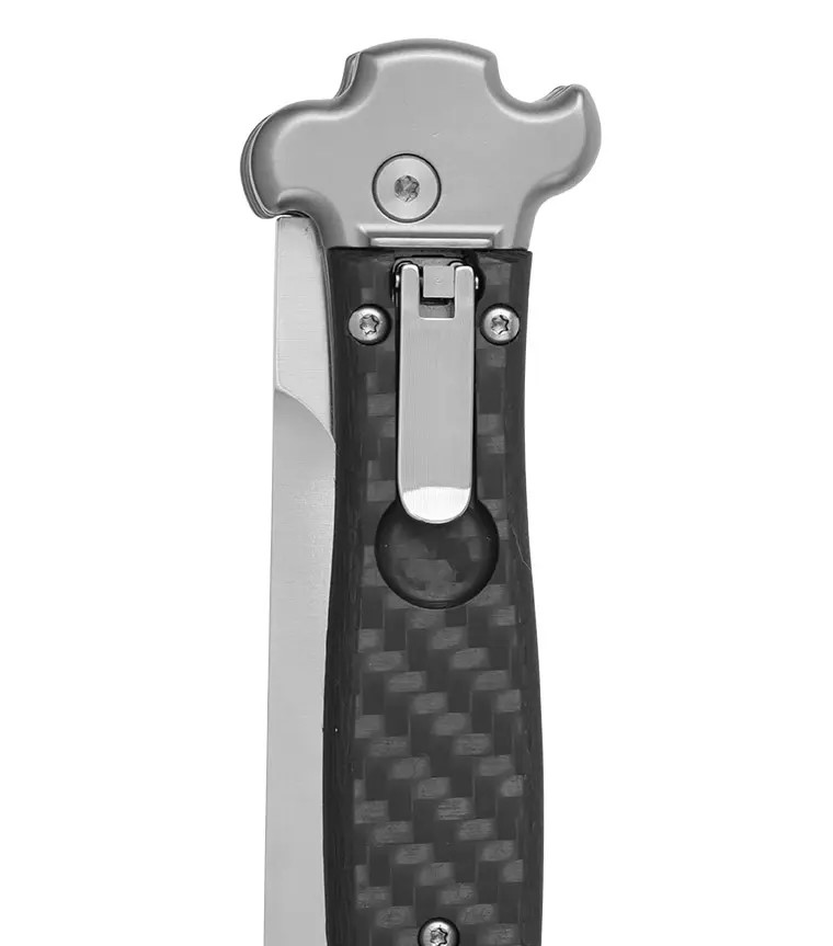 ZERO+是一款採用槓桿鎖定機制的現代匕首,也是目前市面上最長的槓桿鎖定匕首!它配備緞面處理的N690Co不銹鋼匕首型刀刃和經噴砂處理的 AISI 430 實心鋼護手。雙彈簧設計帶來更快的開合速度,並確保更長的使用壽命。反向槓桿設計實現快速開合。手柄採用碳纖維材質。