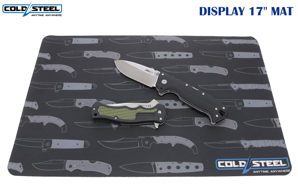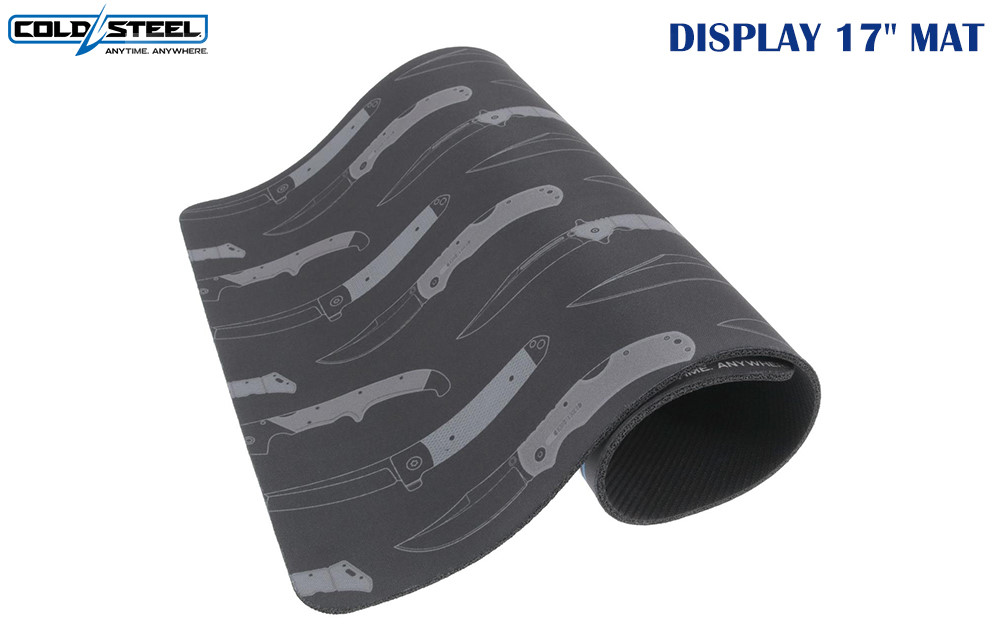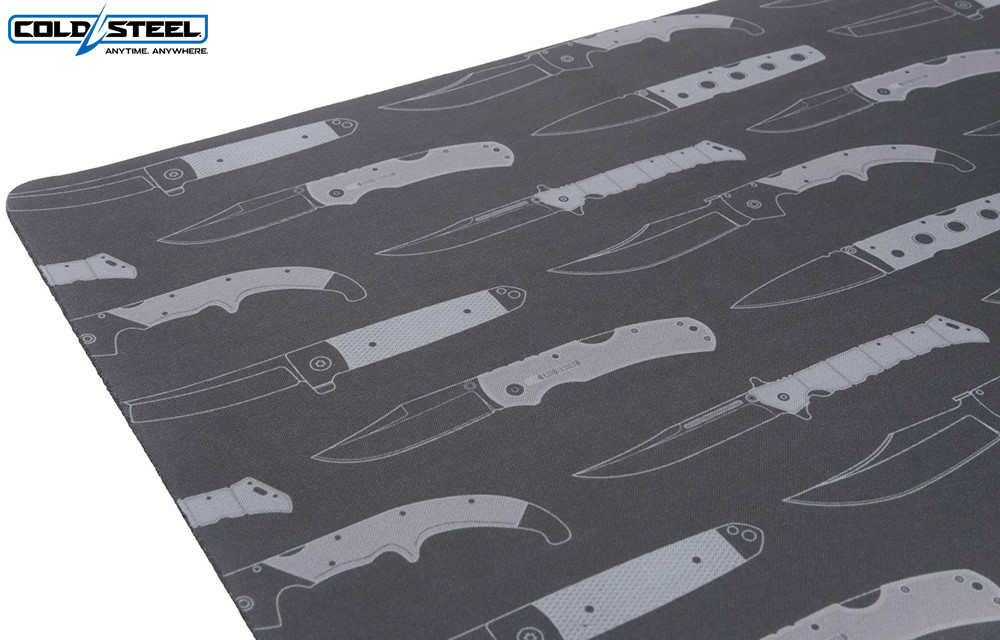 ●使用這款帶有多個刀圖案和 Cold Steel 標誌的優質 TekMat 展示和清潔您的 Cold Steel 刀具。