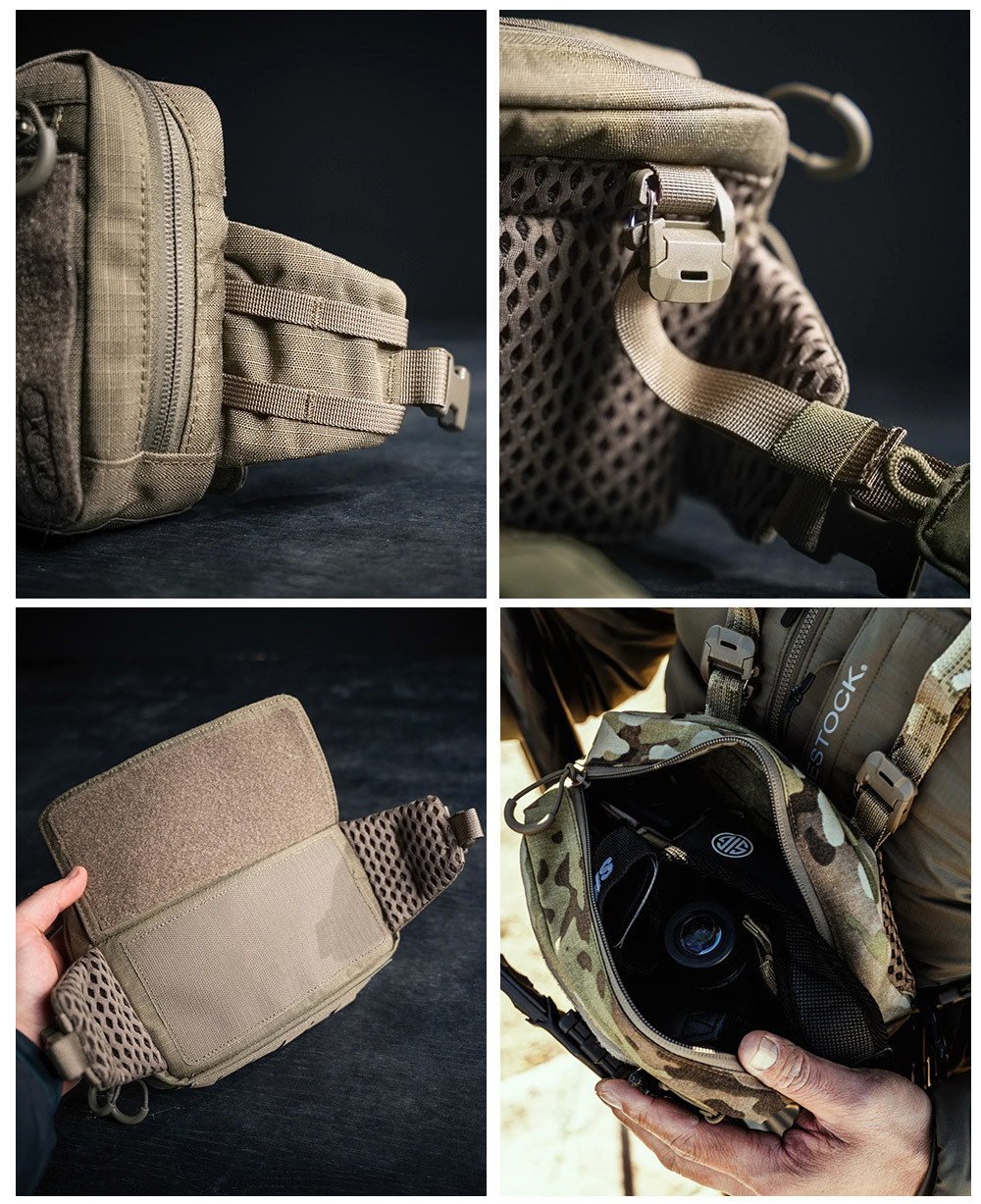 這款中型胸包高6 英寸、寬 8 英寸、深 2.5 英寸,在保持流線型外觀的同時,為關鍵任務裝備提供了充足的收納空間。透氣網眼背帶系統可促進空氣流通,減少長時間配戴時的汗水積聚,進而提升舒適度和透氣性。