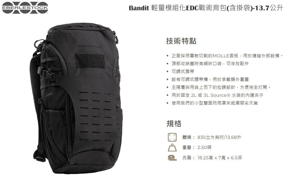 Eberlestock Bandit 輕量模組化 EDC 戰術【背包】-13.7公升 -黑色
