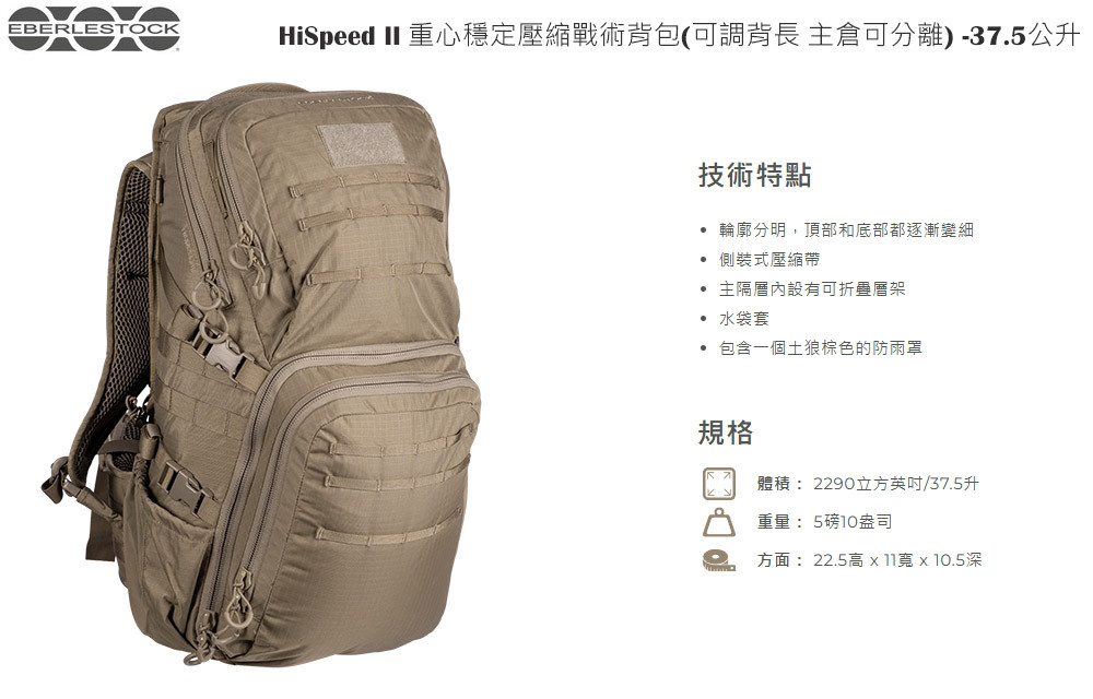 Eberlestock HiSpeed II 重心穩定壓縮戰術【背包】-可調背長主倉可分隔 -37.5公升 -赭土色