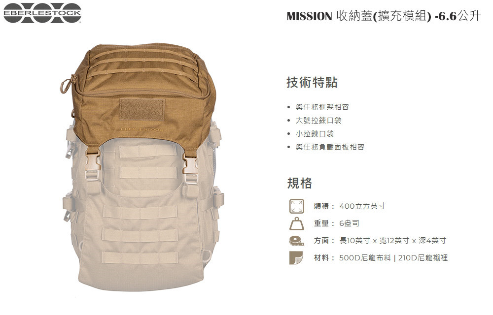 Eberlestock Mission Lid 頂部收納蓋【擴充模組】-6.6公升 -狼棕色