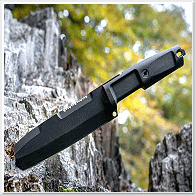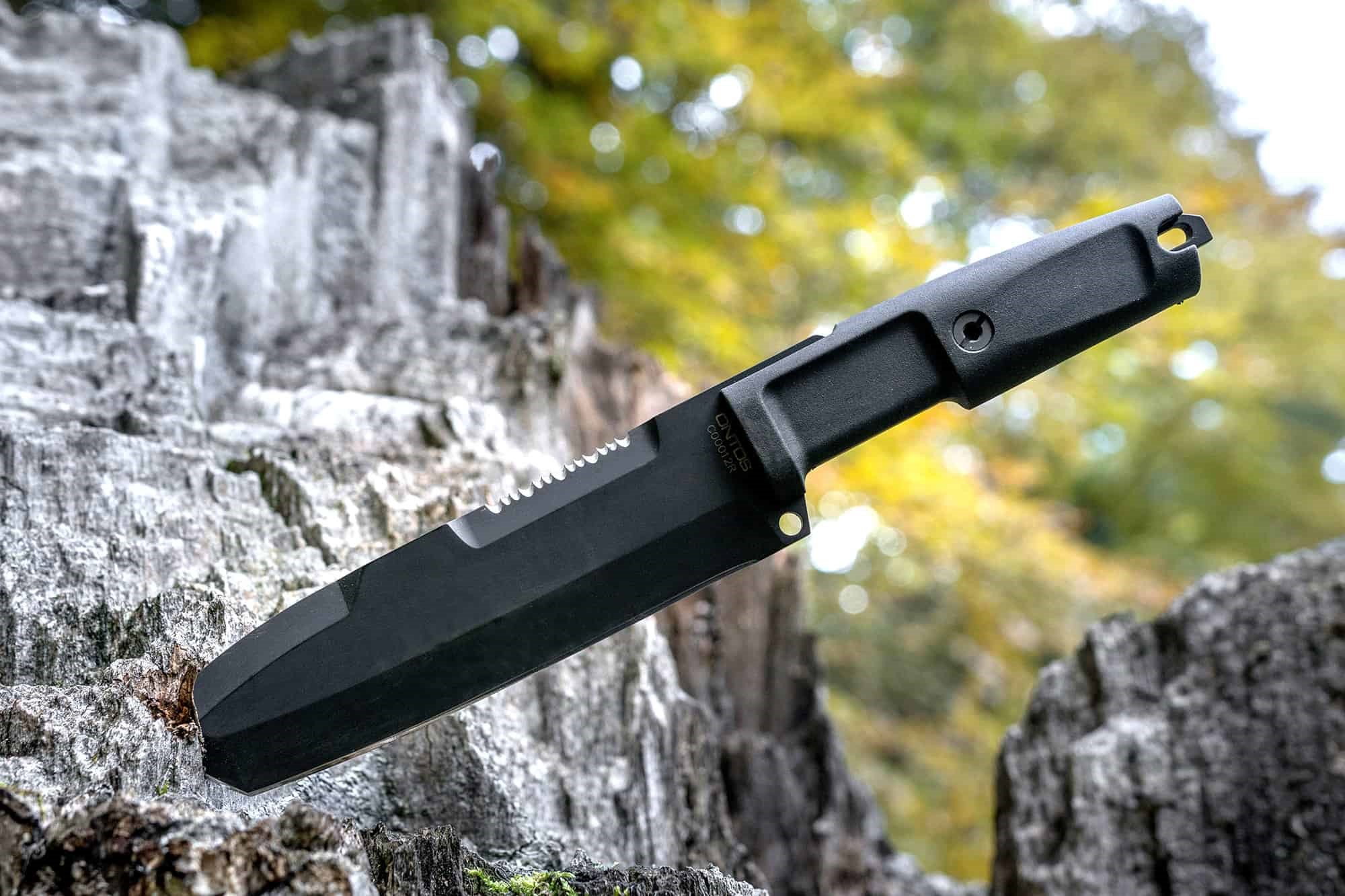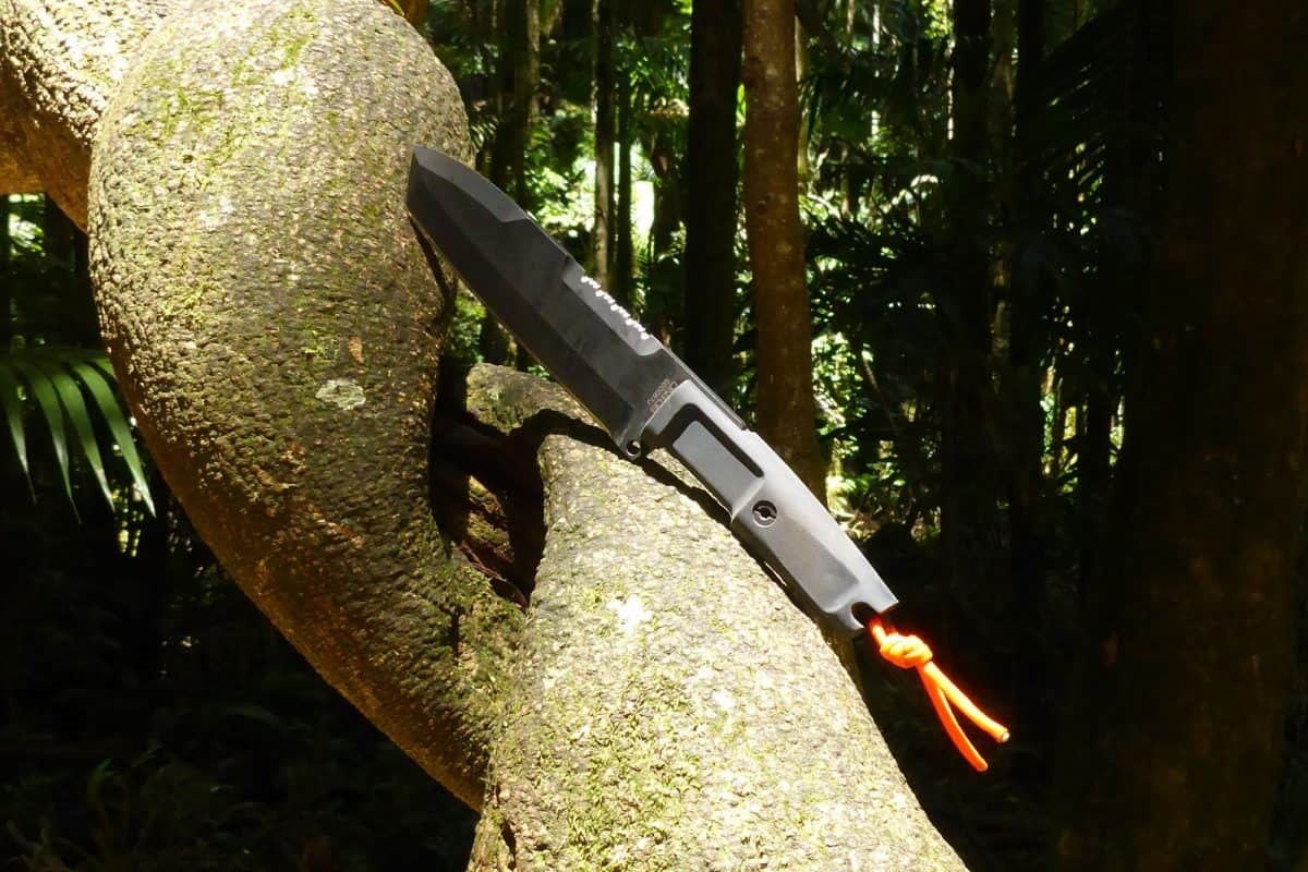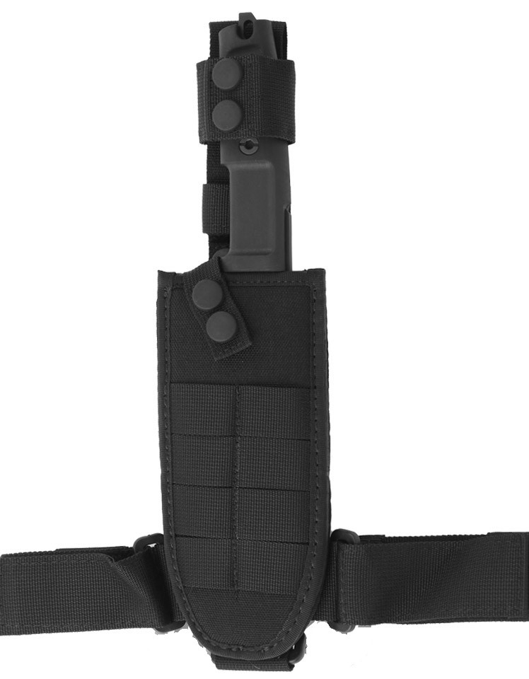 刀片背面的鋸齒狀部分用作備用,在沒有準備使用的情況下切勿被卡住,即使在撤退時,士兵會丟掉大部分笨重的主要裝備,MOLLE 尼龍的大腿護套也能保持在身上。