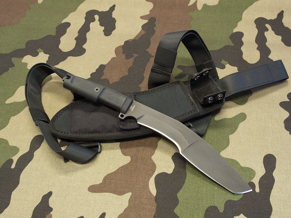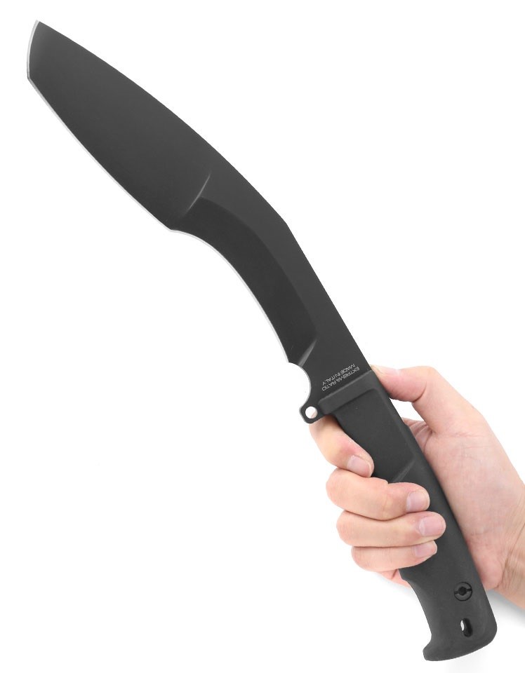 它最終是一把具有頭重腳輕、前向切割邊緣的砍刀,這使其能夠充當斧頭,同時保留長刀片的多功能性。