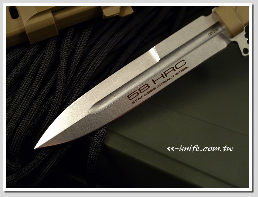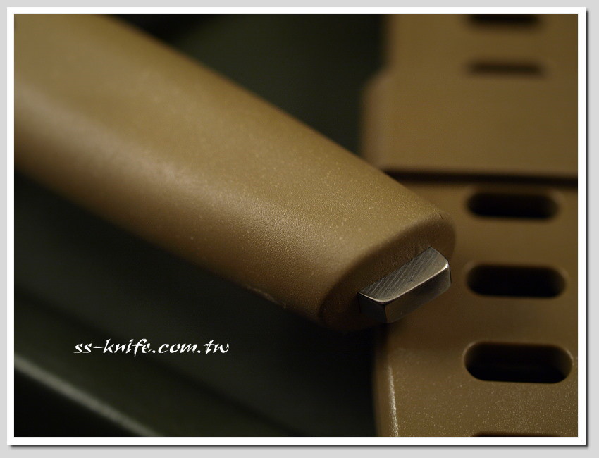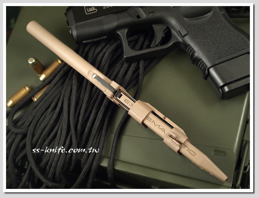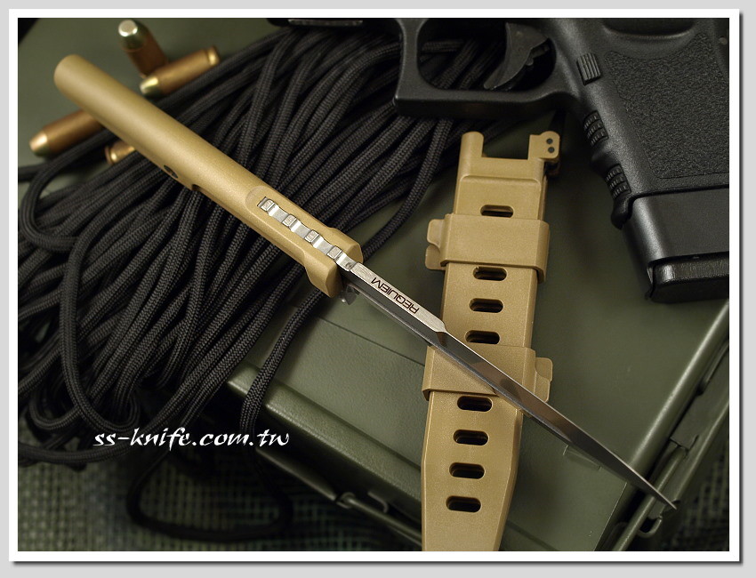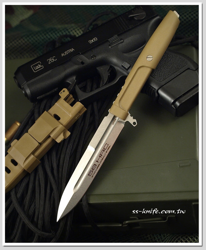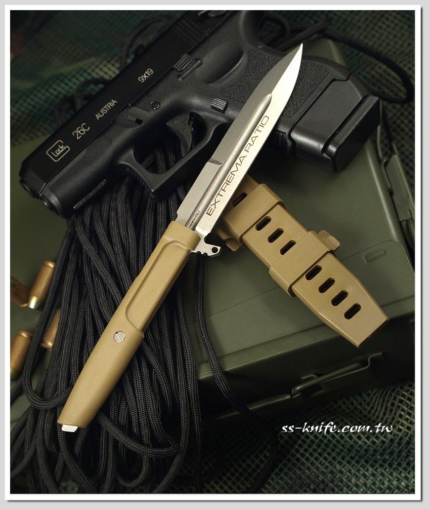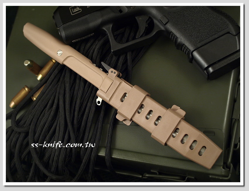 這款多用途的戰術小刀非常的輕巧方便、易於操作,這款單邊護手的設計可以預防再突刺的時候滑手,搭配特殊的Aspis尼龍刀鞘,極端武力專門研究這種刀鞘,它可以快速出鞘,刀鞘商有兩個特別的扣子,它可以緊掛在具有Molle系統的包或外套上。