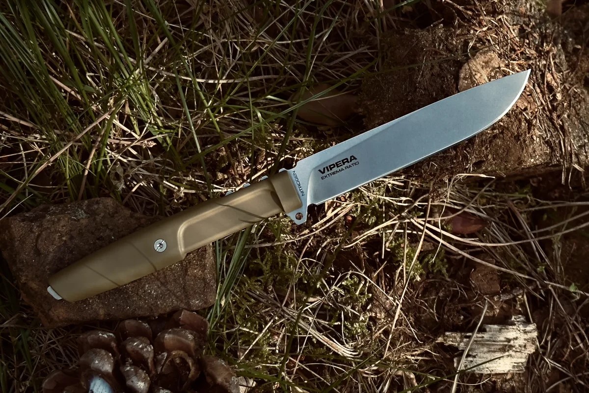 這款刀具提供一系列遊騎兵綠、黑色和HCS版本,完美適用於戶外、生存、叢林技能、緊急準備、露營和四驅探險。氮鋼材質確保了刀具的耐用性、卓越的刀刃保持性,即使使用簡易工具也能輕鬆磨利。先進的水滴形刀尖設計使其成為需要堅固刀尖的野外作業的理想之選。因此,採用氮鋼材質和石洗表面處理的Vipera刀具是您在野外環境和緊急情況下的理想夥伴。