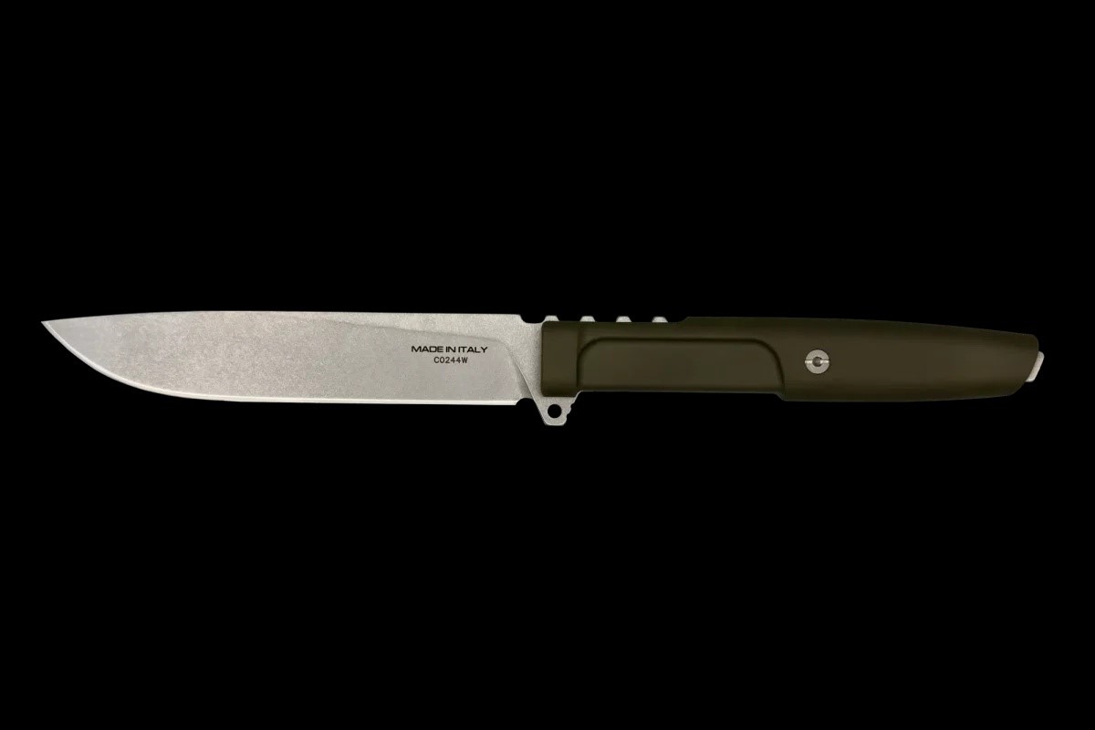 修長的水滴形刀刃穿透力極強;其窄刃全平磨設計,如剃刀般順滑地切割各種材料,同時保持高達 61 HRC 的硬度和韌性。 VIPERA