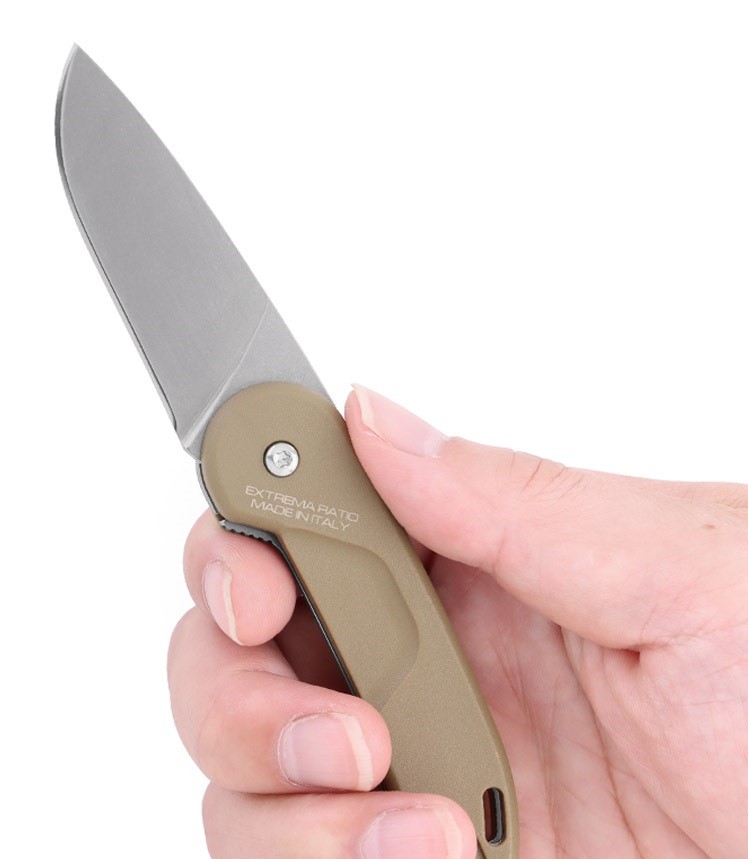義大利軍刀大廠極端武力,全新推出 BFØ CD 最小的折刀版本也是最便宜的版本。這款刀片由BOHLER N690 鋼製成,經過熱處理,硬度可高達60 HRC以上,可以簡單的單手操作,適合作為您的EDC每日攜帶刀。手柄由尼龍製成,重量輕且堅固耐用,這也歸功於其鋼製內部框架。