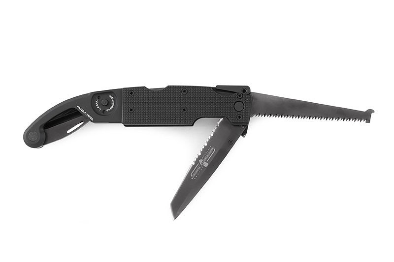 此工具刀是由中心的刀身做為把手並可將兩把折刀往裡面收,主要的刀刃為鳥嘴型,可開啟角度約55度,形成一個倒V,按下中央刀身側面突起的按鈕可將刀刃彈開,它的功能包含切斷電纜線、繩索 ,功能較為一般,作用是一把普通的折刀。第三支刀刃為鋸齒設計,具有鋒利的木鋸功能,在剪繩鳥嘴刀的背部有堅硬鋼栓可用來敲玻璃或水晶,黑色可防止敵人辨識的風險,尼龍把手具有識別性 並且不導熱,方便在嚴峻氣候使用。