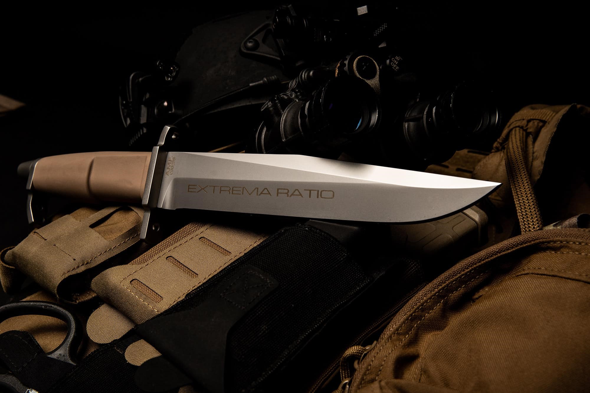 AMF(高級多功能)是一款尺寸寬大、可拆卸的求生刀,刀刃長20.6厘米,其設計靈感源自20世紀80年代一款傳奇的求生刀。