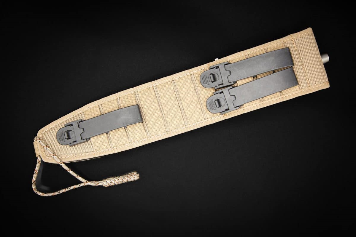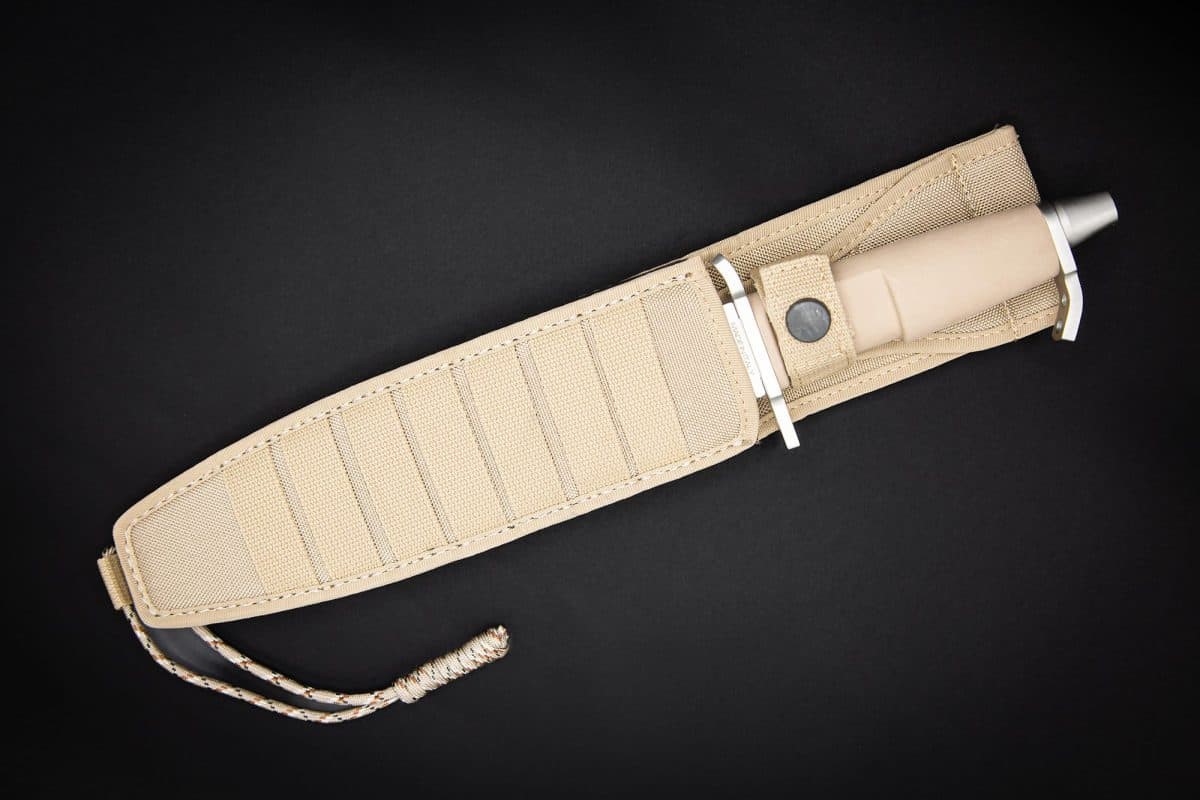 它配有MOLLE織帶系統的Cordura刀鞘。