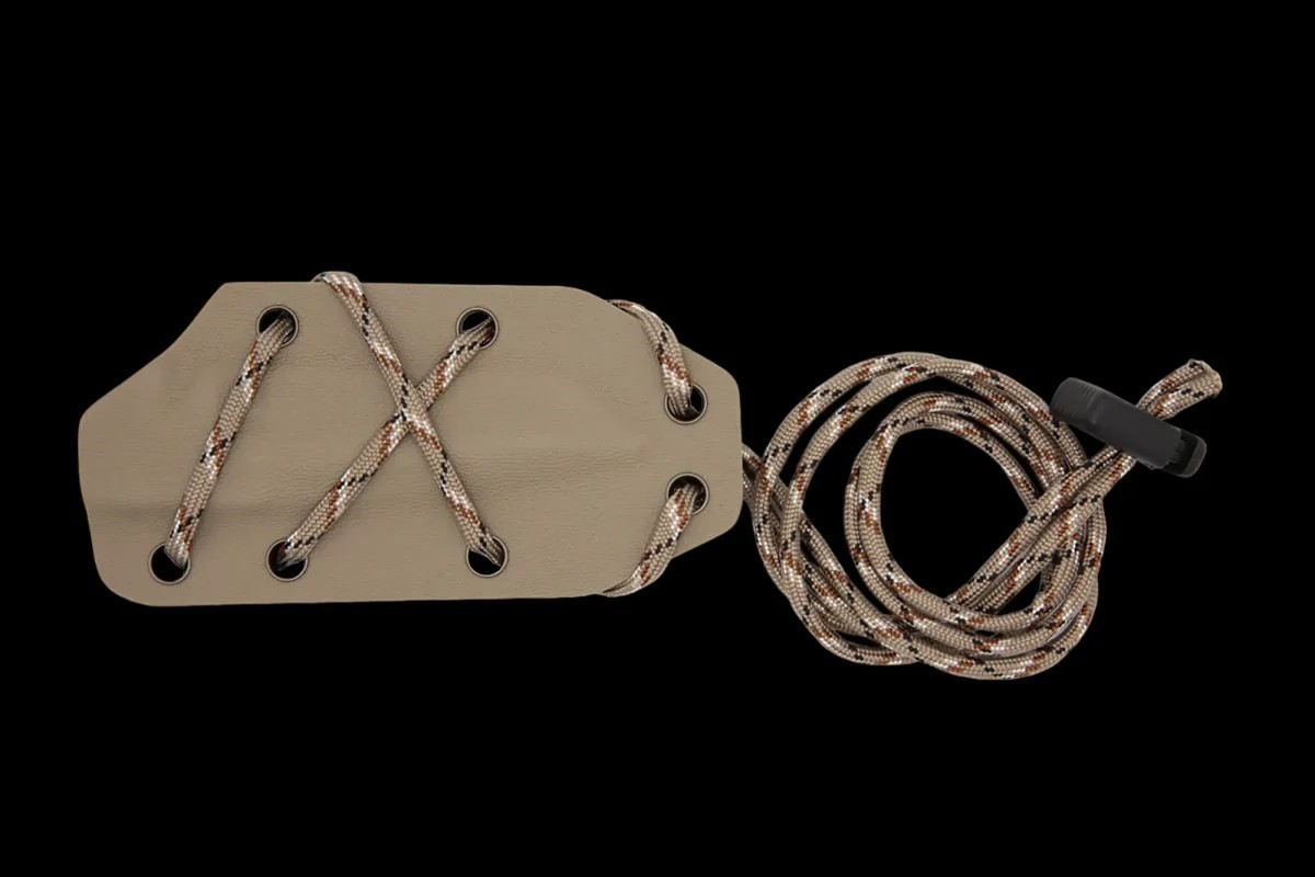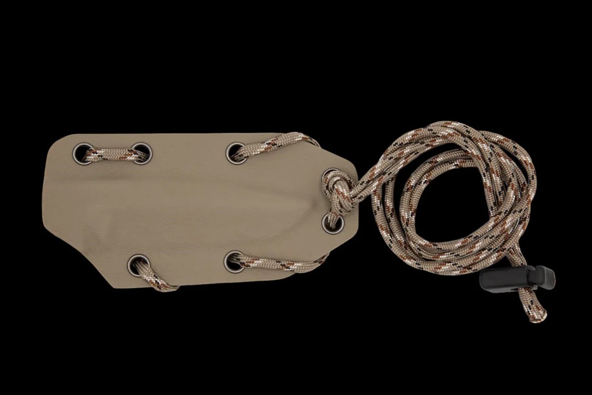可作為頸刀使用,並配有 550 傘繩掛繩,方便佩戴在頸部。此外,它還可以透過可選的腰帶夾固定在腰帶上,或使用一個或多個可選的 ULTICLIPS 固定夾固定在口袋、褲子、夾克和襯衫上。兩種佩戴方式均適用於左手和右手。刀鞘也可連接到 MOLLE 系統。