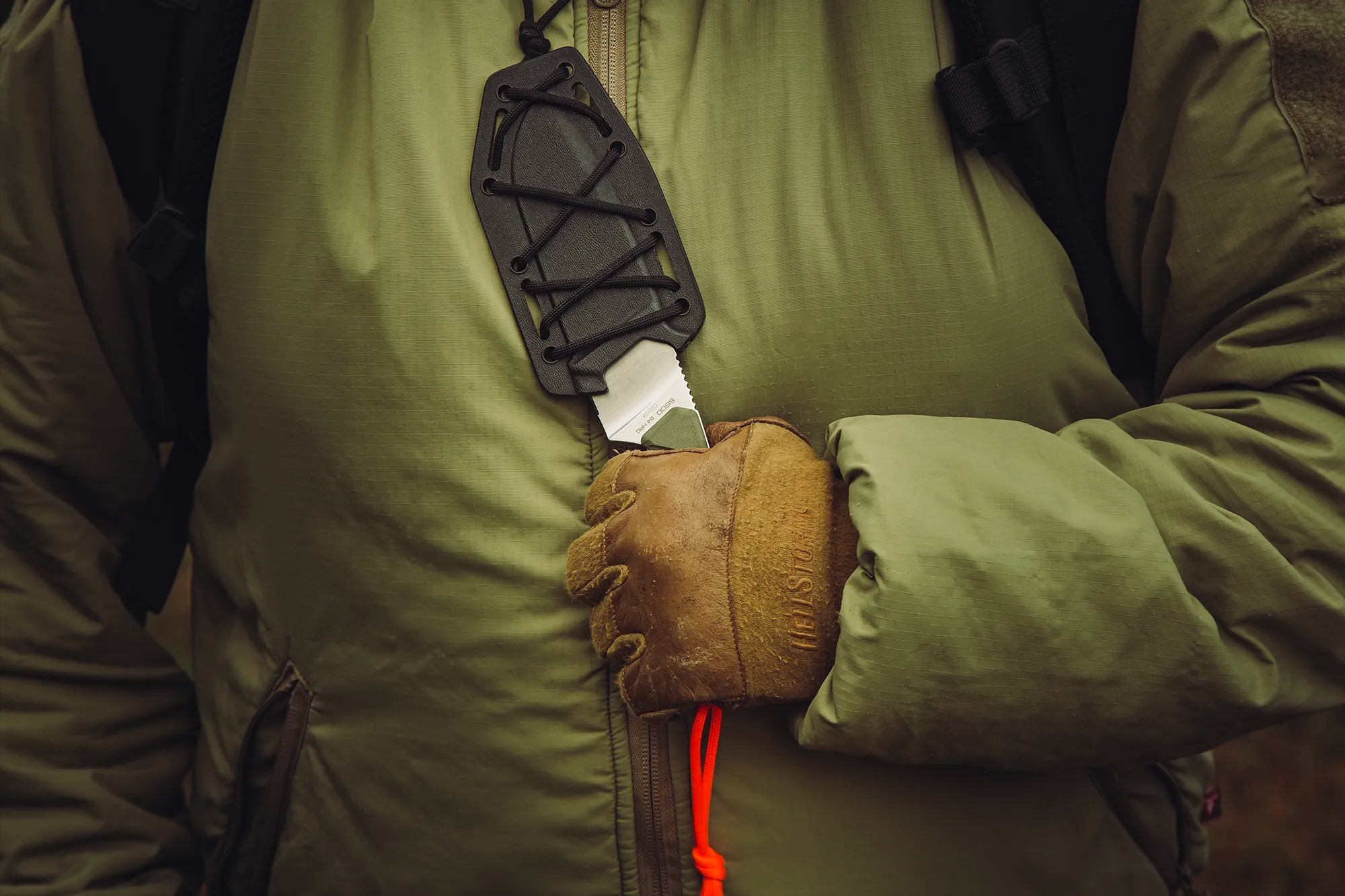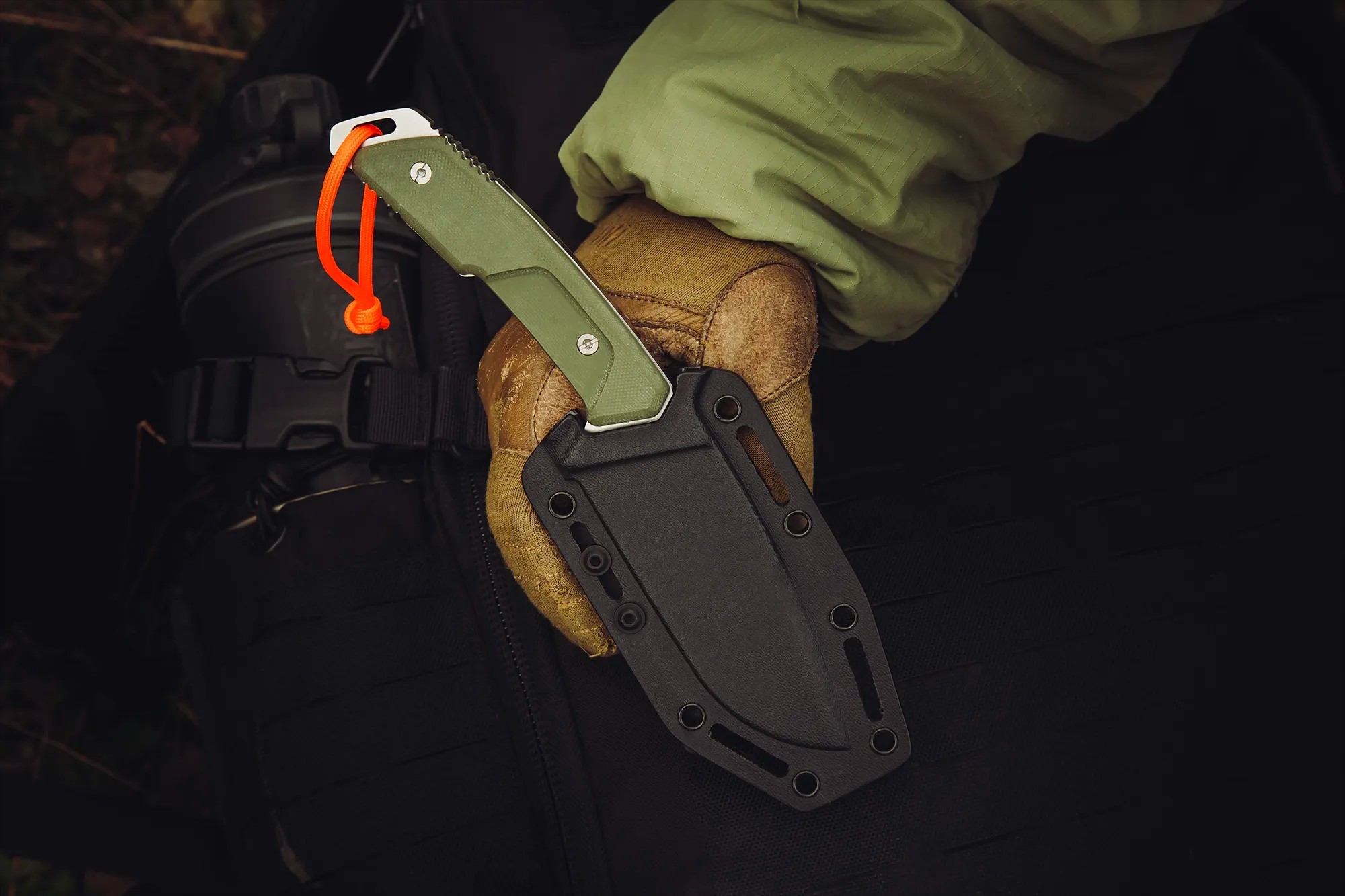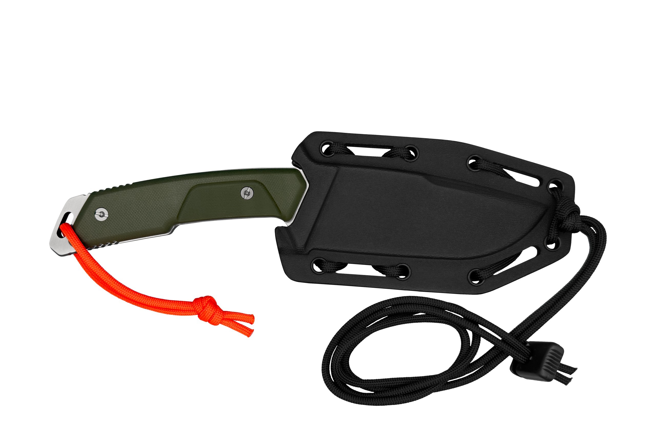 該系列專為野外使用而設計,擁有專屬的塗裝和解決方案:綠色手柄,融入環境;石洗或緞面處理的刀刃,便於維護;高可見度傘繩;以及實用耐用的刀鞘。