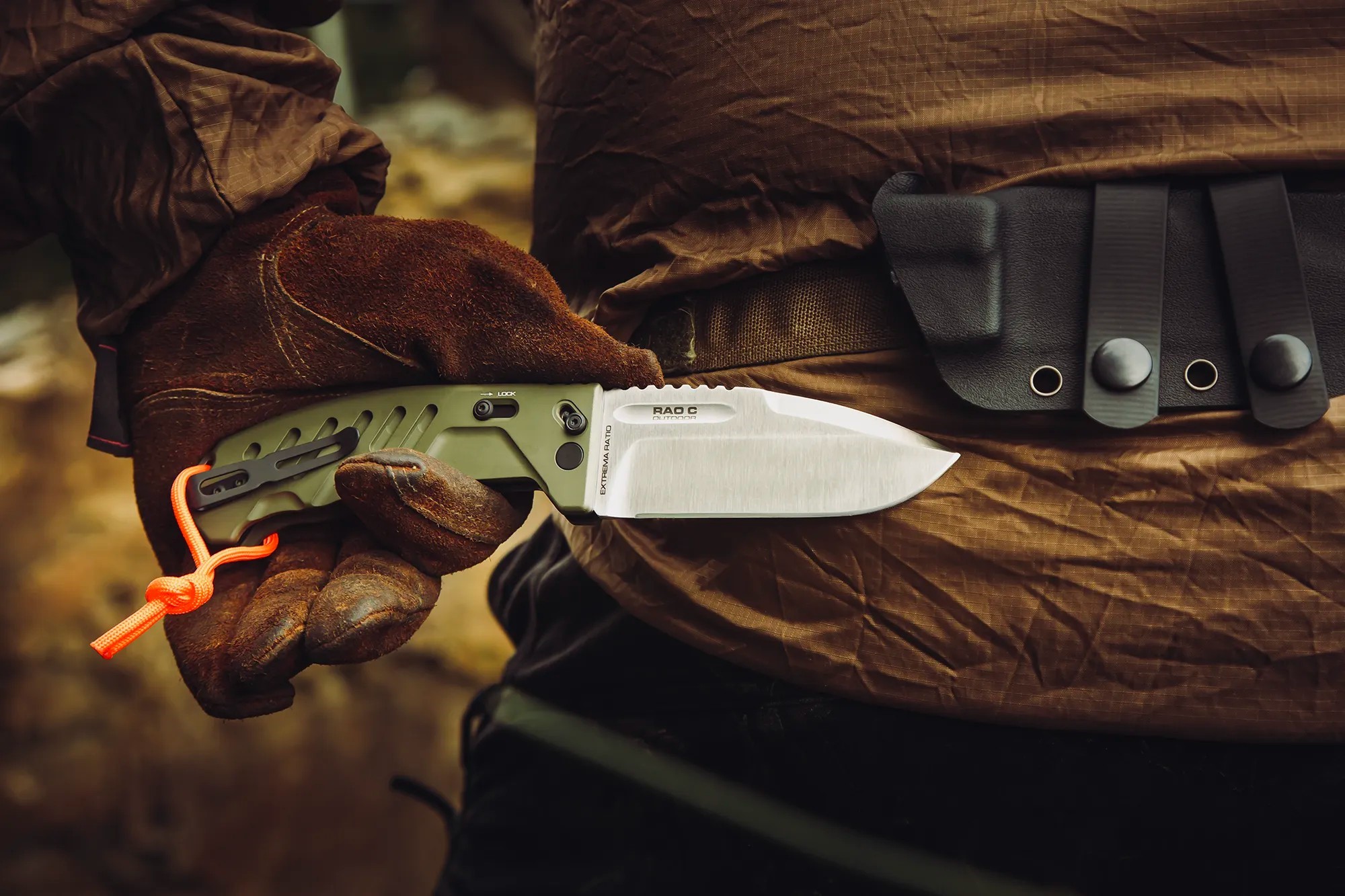 與基本款不同,RAO C Outdoor 配備了Kydex 刀鞘,專為戶外安全攜帶而設計,刀刃可以完全打開。它輕巧耐用,不吸水,而且幾乎無需維護。