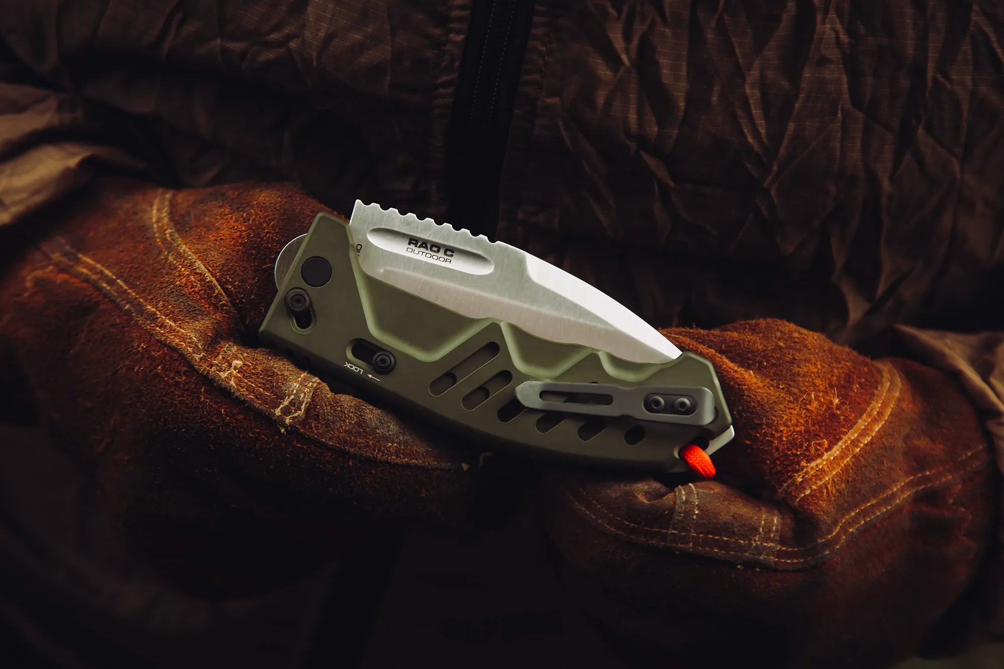 RAO C Outdoor是一款緊湊而堅固的折疊刀,源自經典的 RAO II,並針對戶外使用進行了重新設計。它秉承了 RAO C 系列的設計理念:在更便攜的尺寸下實現最大的結構強度,同時兼具出色的操控性和穩定性。這款刀具專為那些尋求能夠在負重環境下使用的戶外折疊刀的用戶而設計。