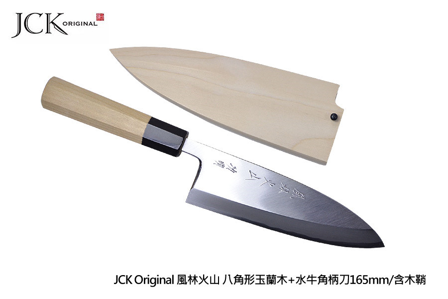 JCK Original 風林火山 八角形玉蘭木+水牛角柄DEBA廚刀165mm(青紙2號鋼)含木鞘