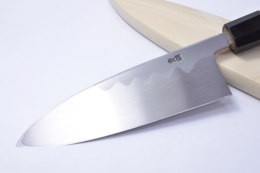 刀芯由日本青鋼(青紙鋼/藍鋼/Aogami)是一種在白鋼中添加鉻和鎢的材料,可增強其抗磨損和抗撕裂性能。在現有的青鋼中,青紙二號鋼因其在保持鋒利的同時還具有抗崩裂的耐久性而最為著名 。當經過適當的鍛造和熱處理後,這種化學成分使鋼材能夠提供卓越的邊緣保持力和邊緣穩定性。