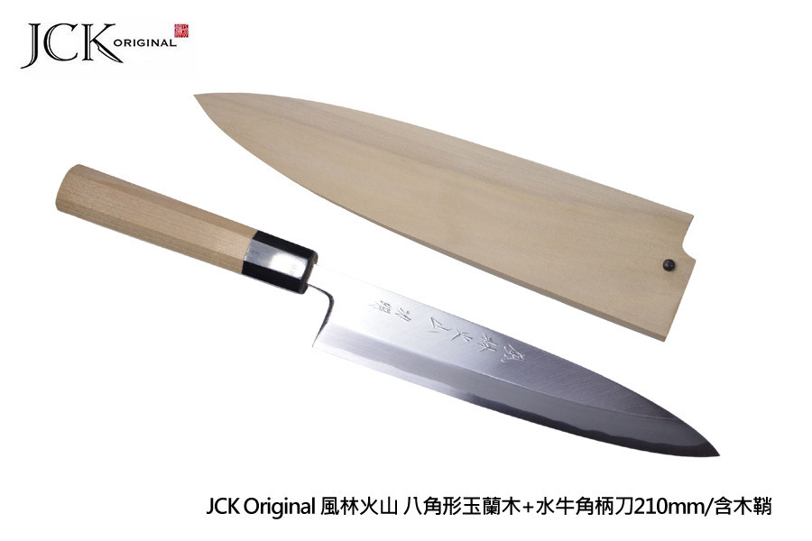 JCK Original 風林火山 八角形玉蘭木+水牛角柄DEBA廚刀210mm(青紙2號鋼)含木鞘
