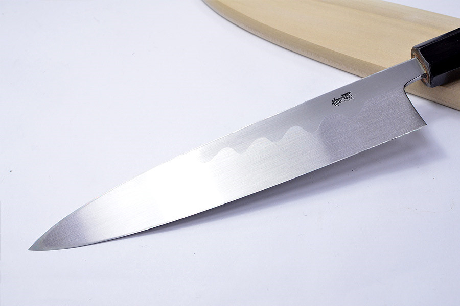經驗豐富的工匠希望最大限度地發揮這種優質碳鋼的切割性能;除了仔細的熱處理之外,他們在手工研磨和手工銳化過程中也格外小心,因為他們想要創造薄的切割刃,甚至 50/50 的刃口幾何形狀。