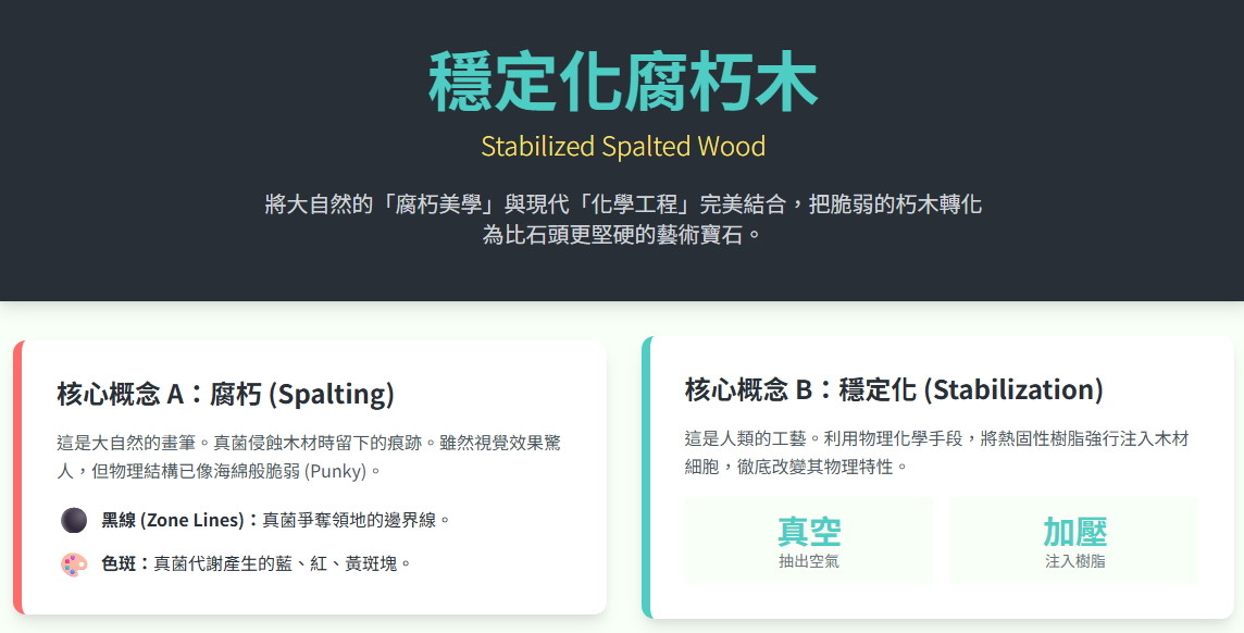 ●穩定腐朽木手柄: 「腐朽」指的是因真菌作用而呈現出獨特紋理和變色的木材。當某些類型的真菌開始在木材上生長時,它們會形成錯綜複雜的深色線條或條紋,這些線條或條紋通常伴隨對比鮮明的顏色區域,從而形成極具視覺吸引力的圖案。這些圖案讓我想起了大峽谷國家公園美麗而充滿活力的景色,因此我們決定將這種穩定化腐木用於 Kagayaki Grand Canyon R-2 大馬士革系列刀具。