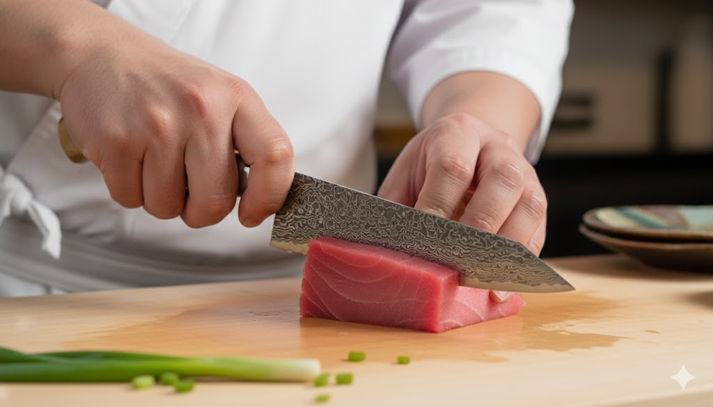 多功能切付牛刀: 切付牛刀是日式版的經典西式廚刀。它可配合多種不同的切割技巧,完成各種廚房任務,適用於切割絕大多數肉類、魚類、蔬菜和水果。三角形刀尖尤其適合精細切割和魚肉。