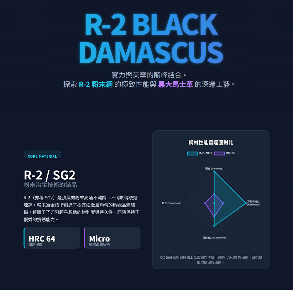 錘鍛黑大馬士革鋼(R-2核心)