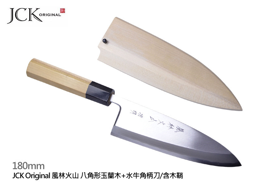 JCK Original 風林火山 八角形玉蘭木+水牛角柄DEBA廚刀180mm(銀紙3號鋼)含木鞘