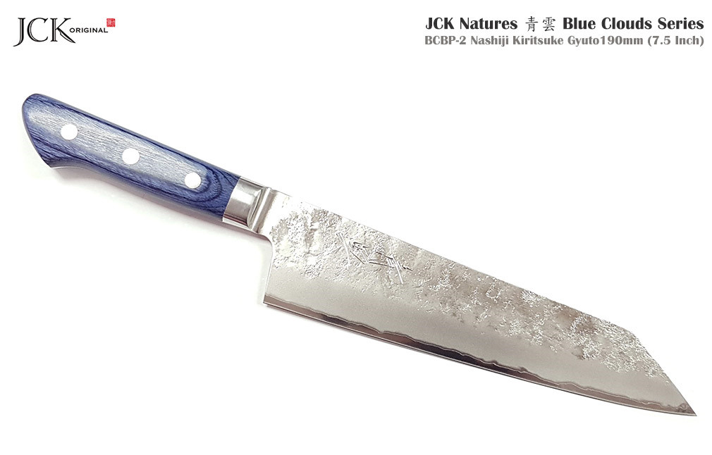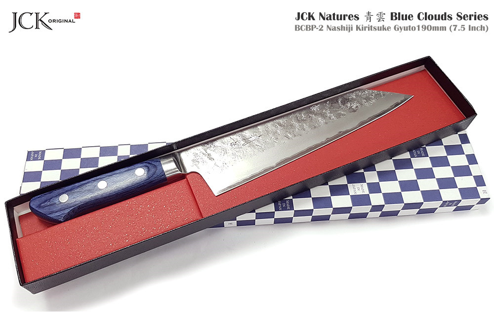 ●我們特別向那些正考慮購買第一把日本刀,並希望擁有一把價格適中、品質上乘、實用美觀且極具時尚感的刀具的顧客推薦我們的“JCK Natures, Blue Clouds”系列刀具。當然,它們同樣適合專業廚師和熱愛烹飪的家庭廚師。