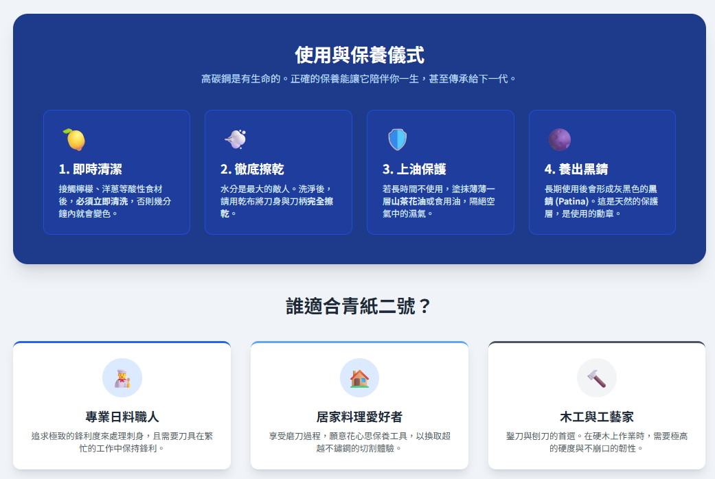●使用後,請用手徹底清洗刀刃、刀柄和刀柄,並用軟布擦乾,存放在乾燥處。