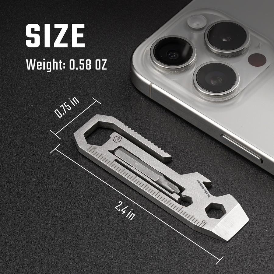 ■6 合 1 多功能工具,功能多樣 – 這款 EDC 多功能工具結構緊湊,功能強大,配備平頭撬刀、可拆卸十字螺絲刀頭、開瓶器、三個六角扳手(M2、M3.5、M5)以及內置公制和英制標尺,非常適合快速修復、測量和日常攜帶需求。
