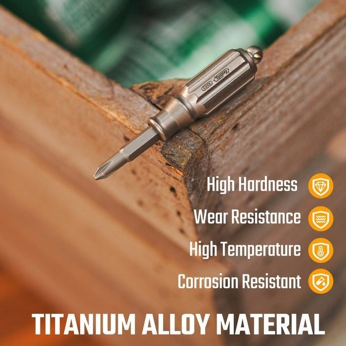 優質材質:這款迷你螺絲起子採用輕質但堅固的 TC4 鈦合金製成,具有出色的耐用性和耐腐蝕性,非常適合在任何環境下長期使用。