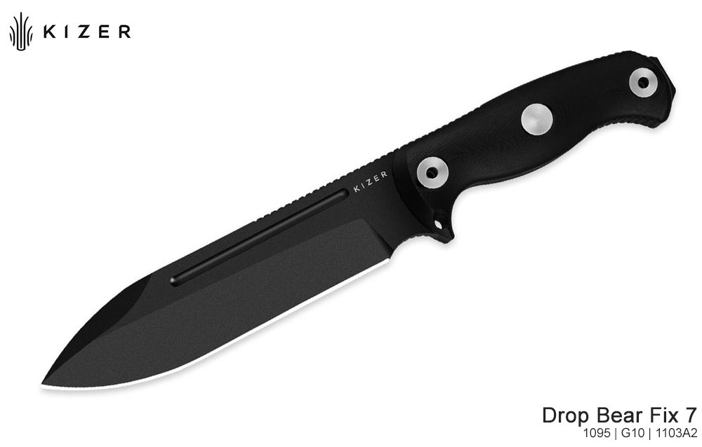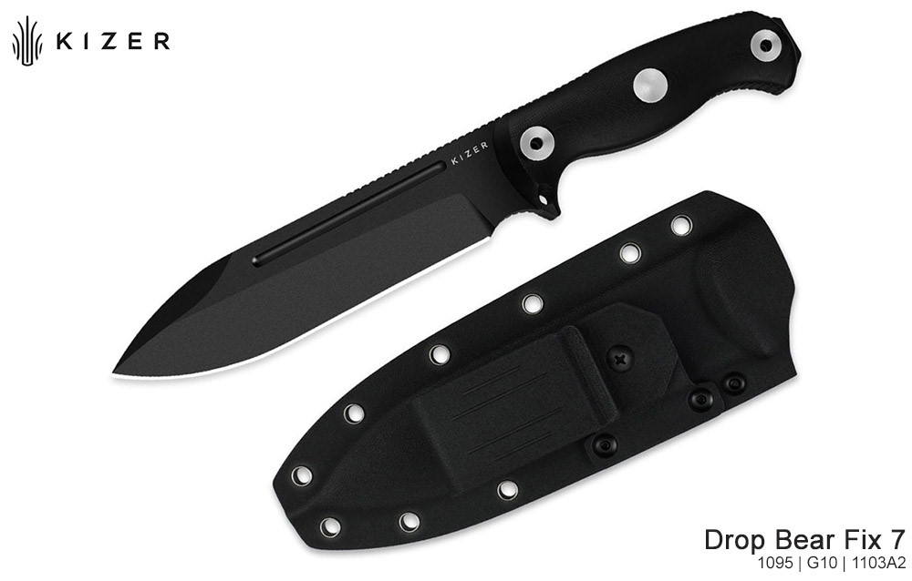 Kizer Drop Bear Fix 7 黑G10柄黑刃直刀 -1095碳鋼(黑色處理)