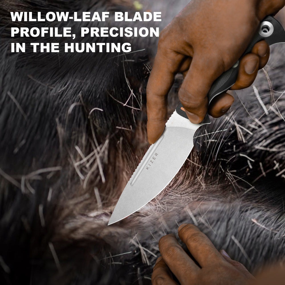 Kizer Cutlery Evenki刀體現了鄂溫克族人的精神——他們是游牧獵人,在北極森林中繁衍生息了數千年。他們的生存依賴柳葉形刀刃,這種刀刃的設計經過世代的改進,使其能夠勝任剝皮、雕刻木材和穿越崎嶇地形等各種任務。如今,這款刀刃透過現代冶金技術重獲新生,既保留了其古老的造型,也滿足了當代探險家的需求。