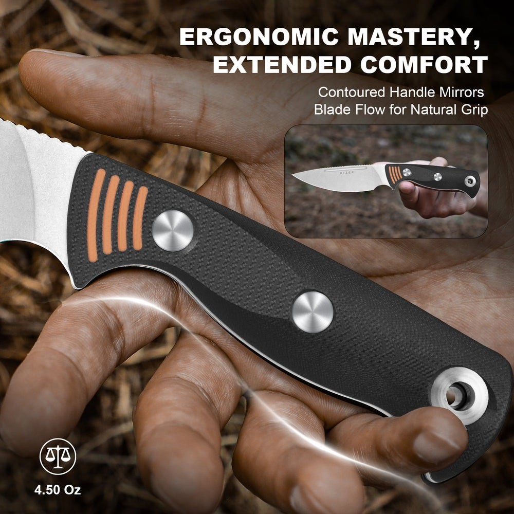 ●Kizer Evenki 3 1099A1 配備 Kydex 刀鞘,方便安全存放與取用。刀片採用平磨工藝,提升切割性能,58-60 HRC 的硬度確保刀刃持久鋒利。作為 Evenki 系列的一員,這款刀具融合了創新設計和優質材料,是注重工藝和功能性人士的理想之選。
