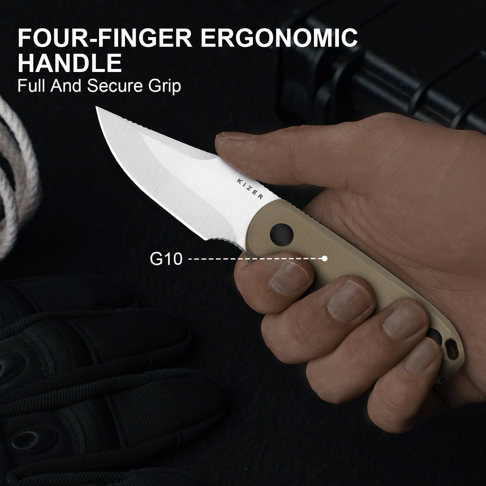 Kizer Drop Bear Fix 卡其G10柄銀刃直刀 -AEB-L鋼(Satin處理)