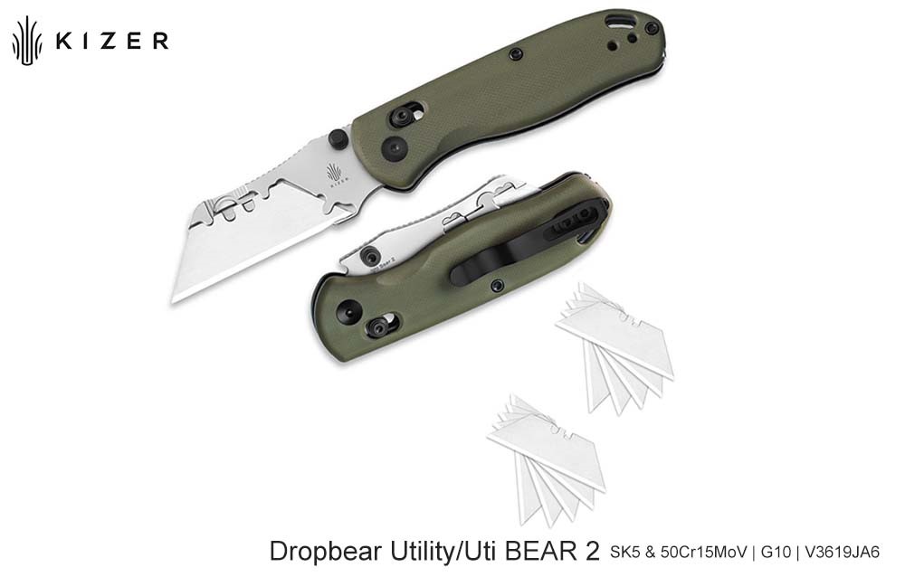 Kizer Drop Bear Utility 綠色G10柄Clutch Lock美工刀 -