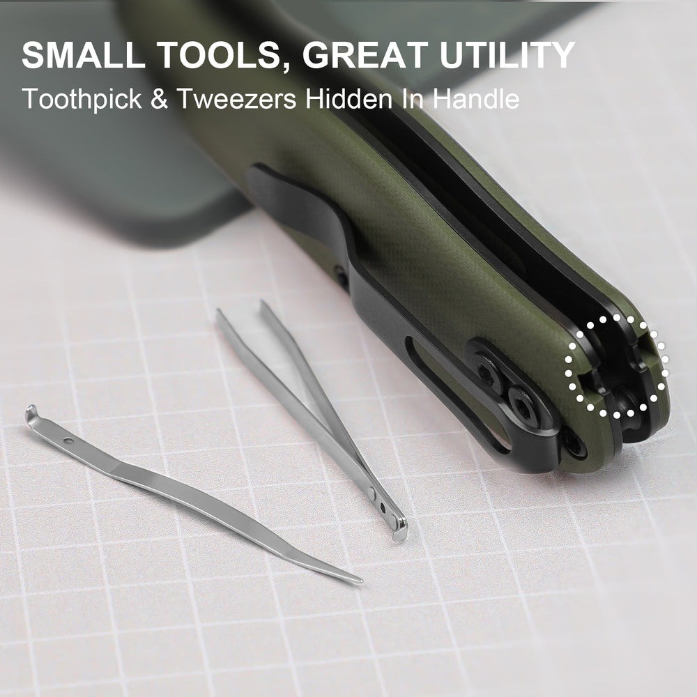 Kizer Drop Bear Utility V3619JA3 是一款小巧堅固的工具,專為日常使用和高強度工作打造。它由 Azo 設計,採用獨特的梯形 SK5 和 5Cr15 刀片,非常適合各種實用任務,在關鍵時刻提供強度和鋒利保持力。 綠色G10手柄即使在惡劣條件下也能提供安全舒適的握持。它配有可翻轉的口袋夾和緊湊的外形,對於注重裝備可靠性和功能性的人來說,它絕對是您的必備之選。