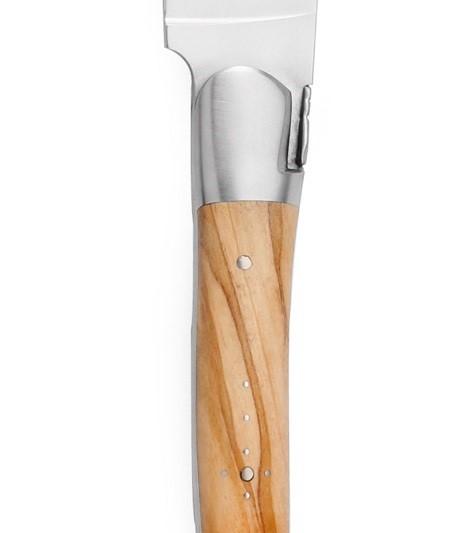 手工刀具上的十字架圓點標誌,為早期牧羊人在野外放牧,方便於飲用餐前酒時,直接將侍酒刀插在土上,對其十字架紋路禱告。 Laguiole是位於法國中南部高原上的一個小村落,小小城鎮卻擁有數家米其林星級餐廳,但此城鎮最為人所稱道的還是其細膩、精緻的鑄鐵工藝。
