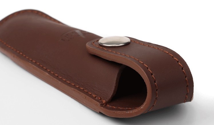 優質黑色皮革腰帶口袋,帶有法國製造的徽標印記,完美貼合您的刀的形狀,並確保提供最佳保護。