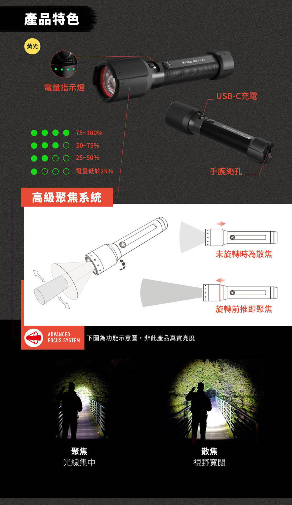 德國Ledlenser P7R Pro 充電式調焦手電筒(暖色自然光) -2000流明