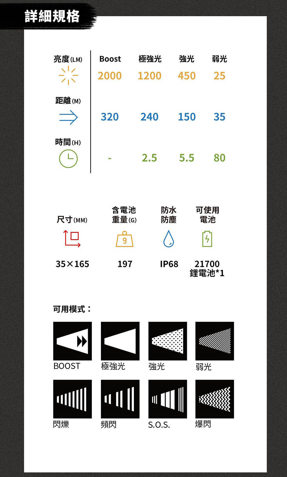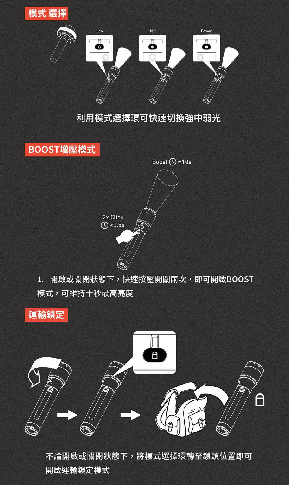 ●高級聚焦系統:輕鬆切換近距離大範圍或遠距離強光