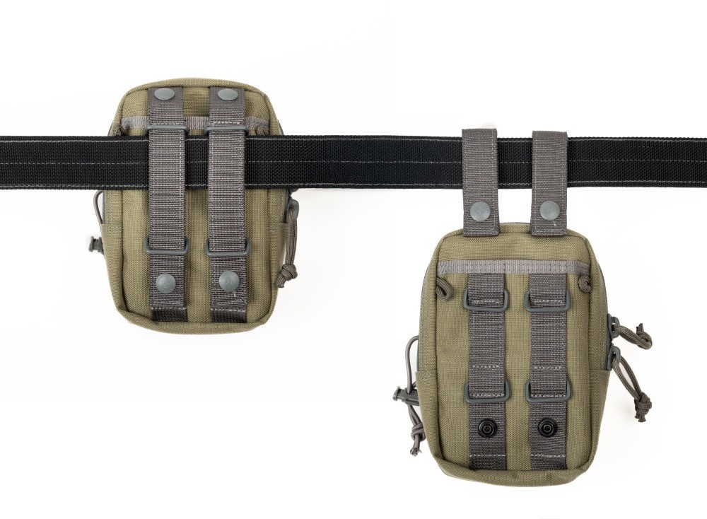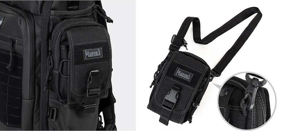 可組裝於MOLLE系統包袋上,配置傘繩鉤環可使用單肩背帶(需另購)。