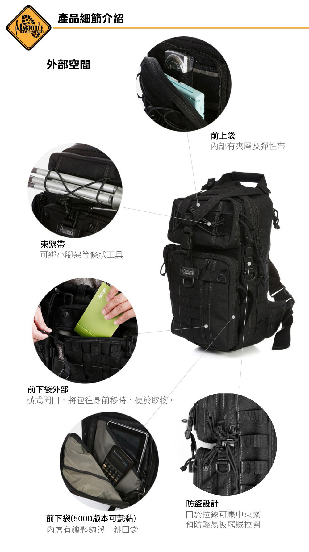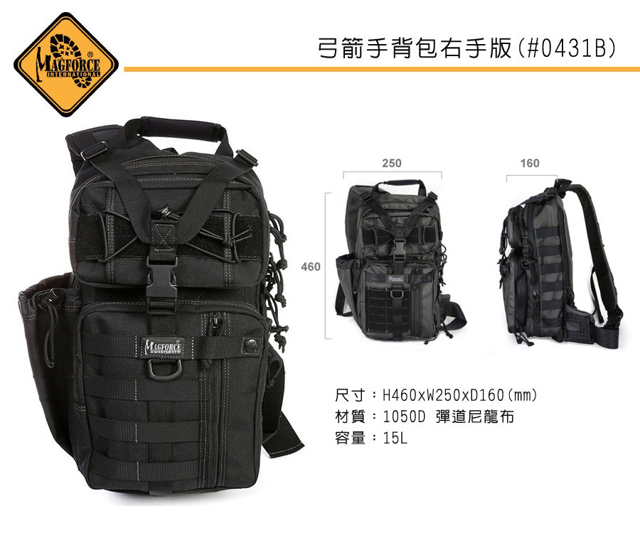 MAGFORCE 弓箭手斜肩戰術背包0431B黑色/1050D 彈道尼龍布