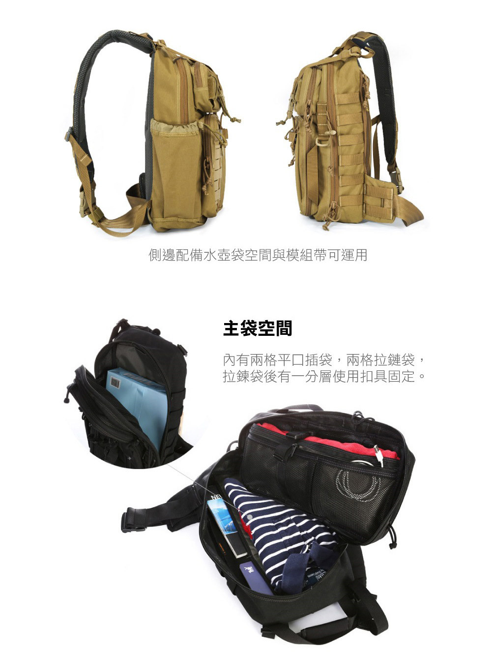 1050D 彈道尼龍布、UTX-DURAFLFX扣具、高拉力耐磨美軍軍規尼龍織帶、高密度魔鬼氈、YKK靜音強力拉鍊