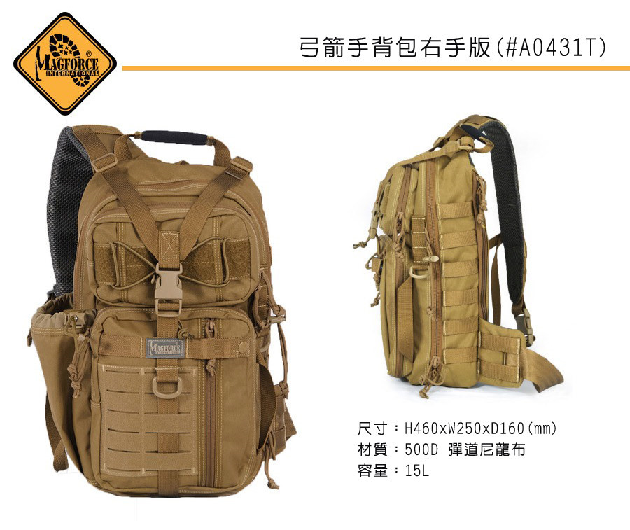 MAGFORCE 弓箭手斜肩戰術背包0431T狼棕色/500D 彈道尼龍布