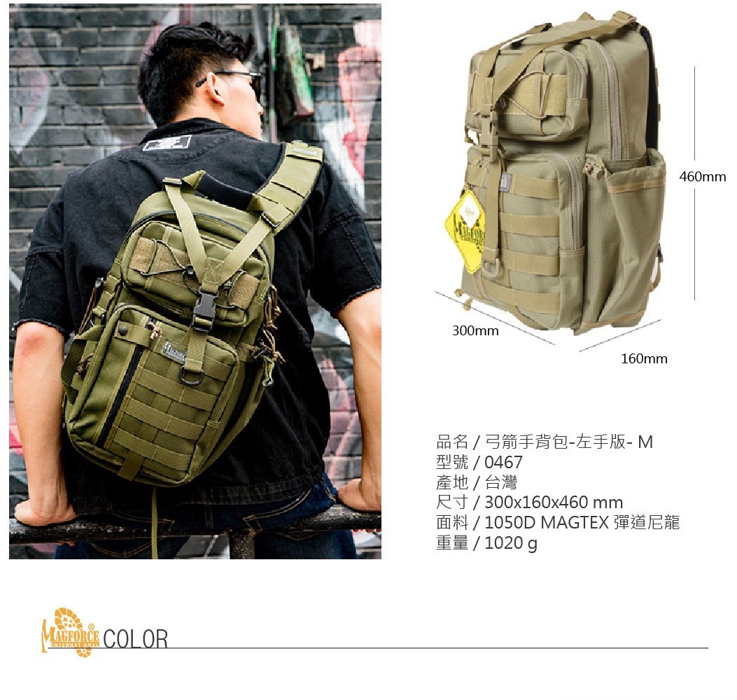 MAGFORCE 弓箭手斜肩戰術背包/1050D 彈道尼龍布(左手版0467B黑色)