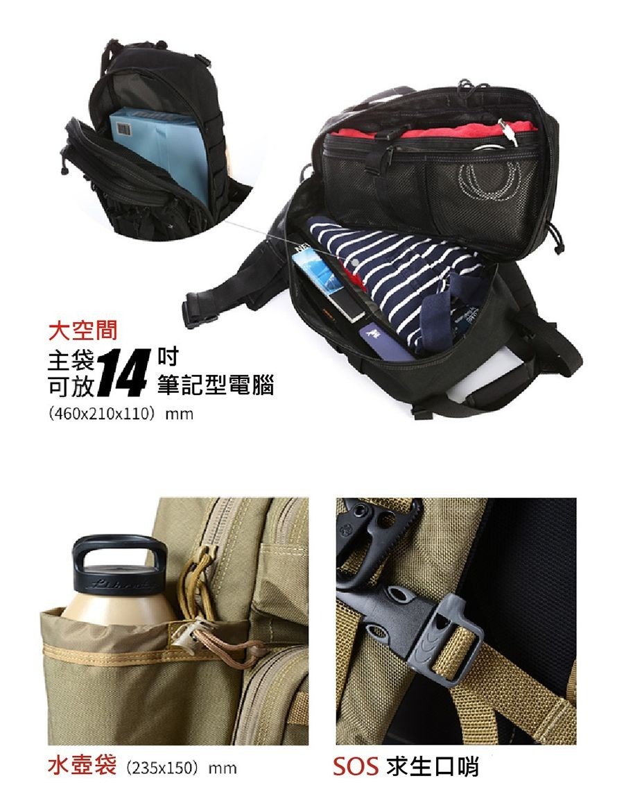 1050D 彈道尼龍布、UTX-DURAFLFX扣具、高拉力耐磨美軍軍規尼龍織帶、高密度魔鬼氈、YKK靜音強力拉鍊