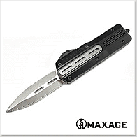 Maxace Uranus 天王星 黑鋁鑲鈦柄 S/E 全齒刃小型 OTF 彈簧刀 - 10Cr15CoMoV鋼 (Satin處理)單刃開鋒