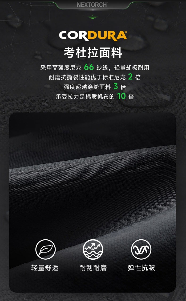 ●耐用的 CORDURA® 布料:比超細纖維強三倍;耐磨,可長時間野外使用。
