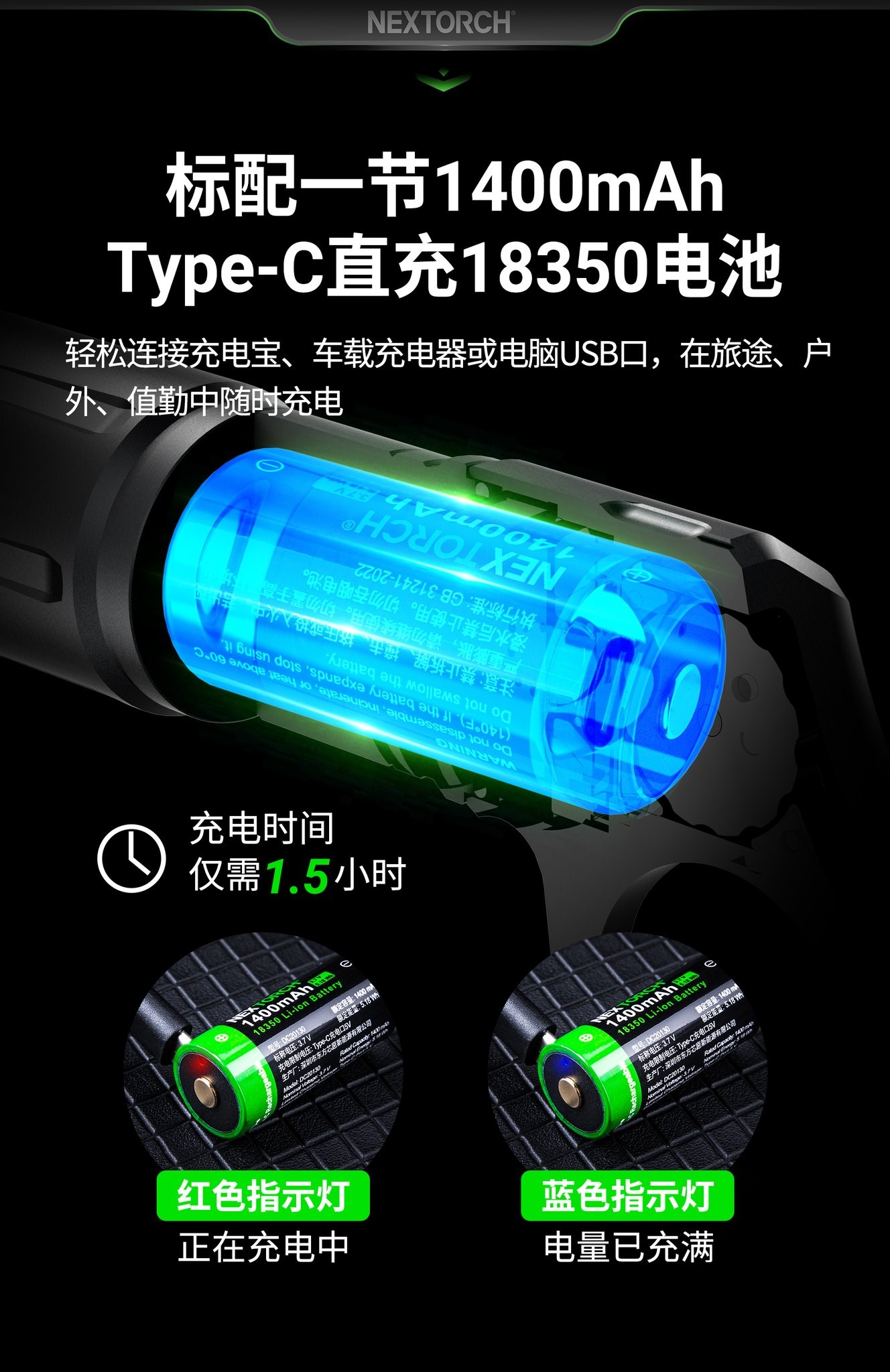 高效能照明:輸出強光,光束集中,夜間使用清晰安全。